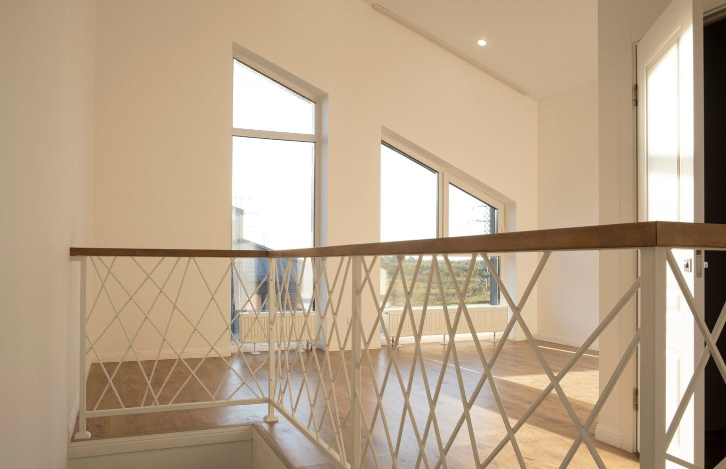 Главная особенность этого таунхауса — невероятно светлая атмосфера на третьем этаже. За счёт больших окон помещения буквально залиты естественным светом, что создает ощущение простора и уюта.
